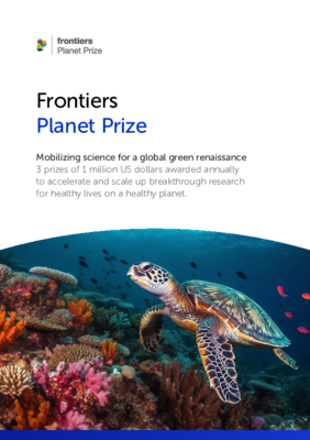 Το Frontiers Planet Prize είναι ένα διεθνές επιστημονικό βραβείο που διοργανώνεται από το Frontiers Research Foundation και επιβραβεύει μετασχηματιστικές επιστημονικές εργασίες και στοχεύει στην ανάδειξη ερευνητικών έργων υψηλού αντίκτυπου στον τομέα της πλανητικής υγείας και της βιωσιμότητας..