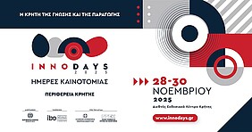 Το Πολυτεχνείο Κρήτης συμμετέχει και φέτος στις Ημέρες Καινοτομίας Περιφέρειας Κρήτης – InnoDays – «Η Κρήτη της Γνώσης και της Παραγωγής», που διοργανώνονται από το Παρατηρητήριο Καινοτόμου Επιχειρηματικότητας Περιφέρειας Κρήτης, 28-30 Νοεμβρίου 2025, στο Διεθνές Εκθεσιακό Κέντρο Κρήτης, στις Γούρνες Ηρακλείου.